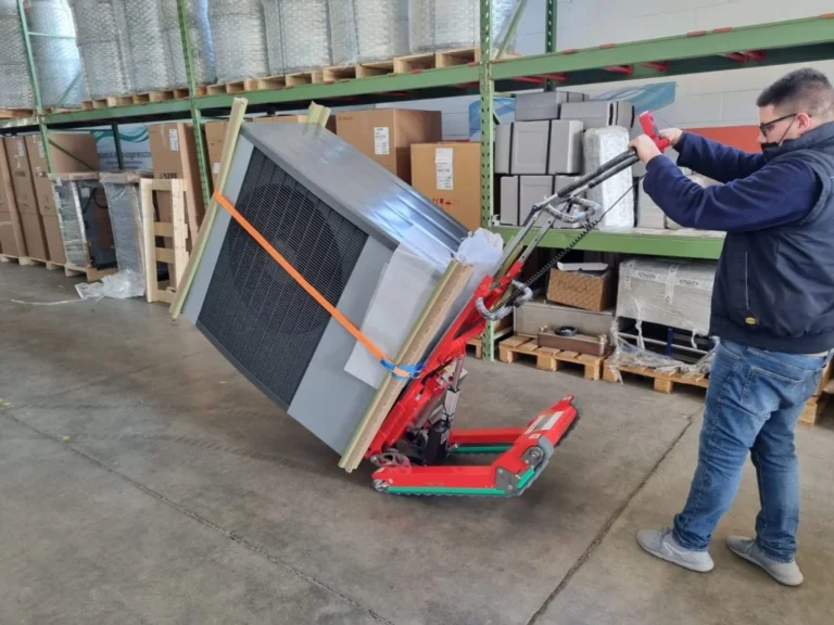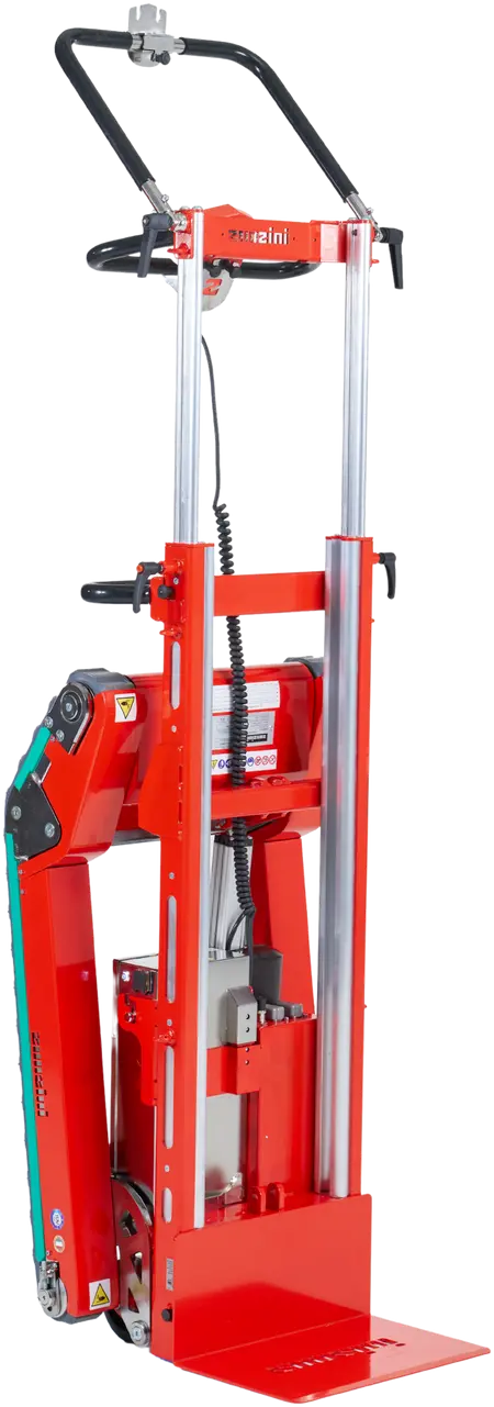 Skipper ist ein elektrischer Treppensteiger für hohe und sperrige Lasten. Man kann damit Treppen hinauf- und hinuntersteigen, auch wenn der Raum zu klein ist, um die Last senkrecht zu transportieren.