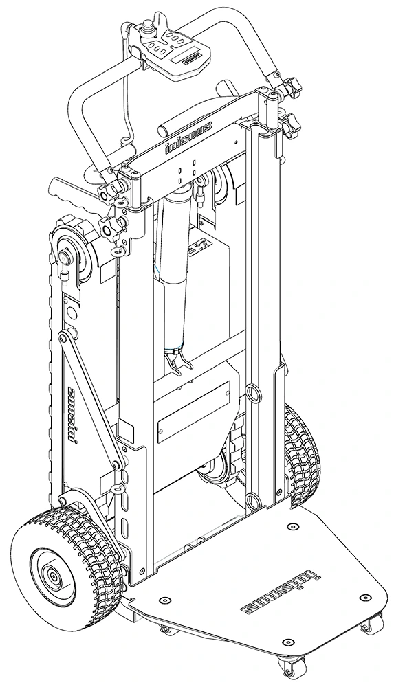 MerkmaleElektrische Treppenkarre. Treppensteiger Sackkarre. Lastentransport 200 kg. Raupen und Räder