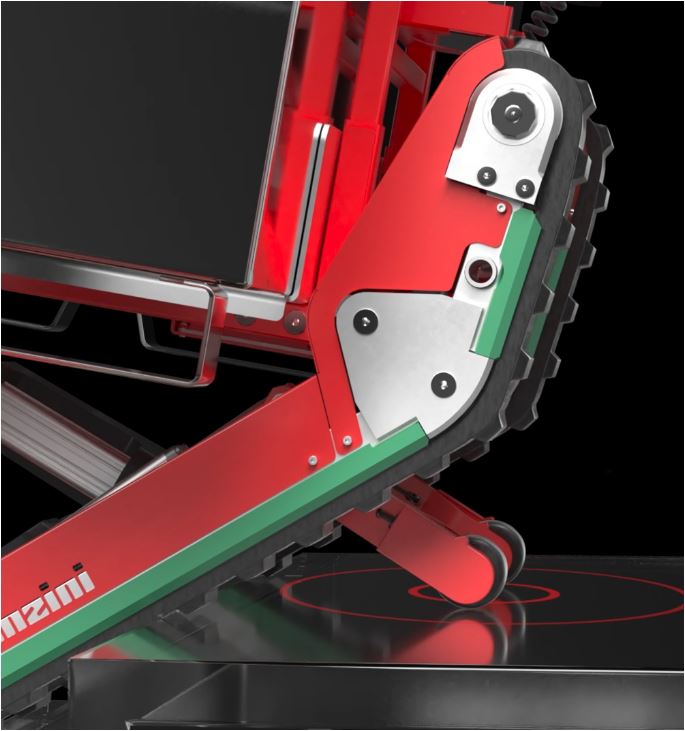 In der Variante mit Stabilisierungsrollen ist Domino Stabilized mit Stufenerkennungssensoren und Sensoren am Stabilisierungsarm ausgerüstet, die kontinuierlich Bodenkontakt gewährleisten.