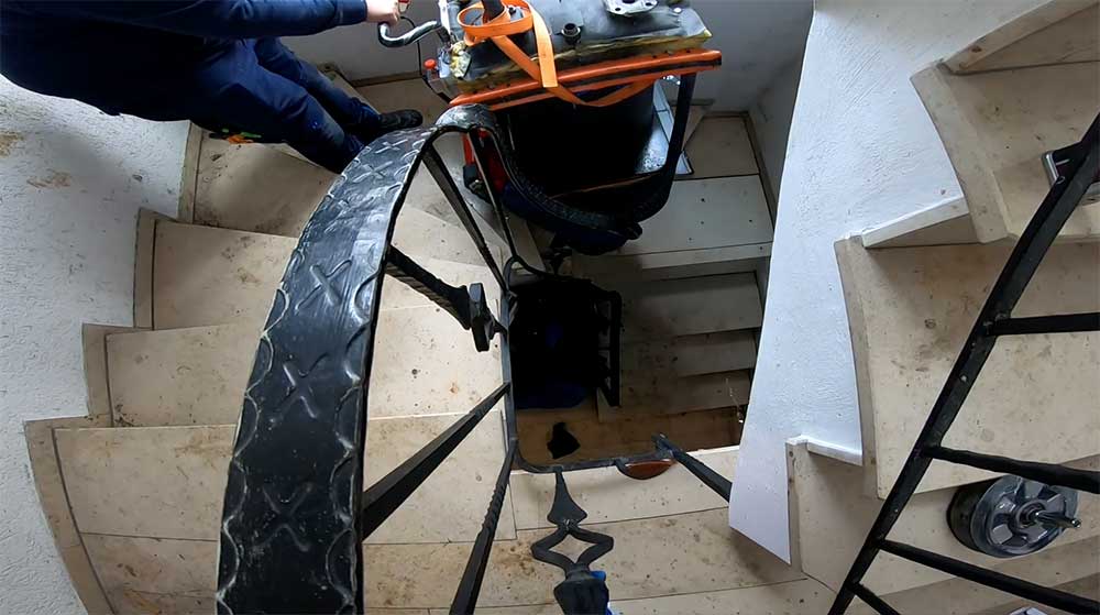 Die integrierte Hebevorrichtung erleichtert das Be- und Entladen von Fahrzeugen und schafft Platz auch auf engen Treppenabsätzen.