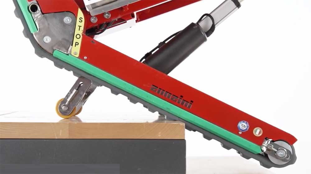 In der Variante mit Stabilisierungsrollen ist Domino Stabilized mit Stufenerkennungssensoren und Sensoren am Stabilisierungsarm ausgerüstet, die kontinuierlich Bodenkontakt gewährleisten.
