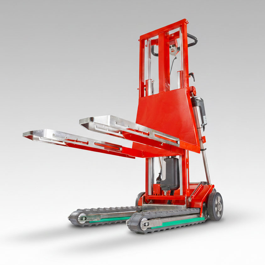 Mit den Raupen bewegen Sie sich dort, wo ein herkömmlicher Elektro-Hubwagen stehen bleibt. Rasen, festgetretener Boden, Schotter, beschädigter Asphalt und unebene Pflasterungen mit Schlaglöchern sind kein Problem mehr. Überwindet Bordsteine, Steigungen und Stufen und erleichtert so den letzten Abschnitt der Lieferung bis zum Endkunden – auch im Freien oder auf der Baustelle.